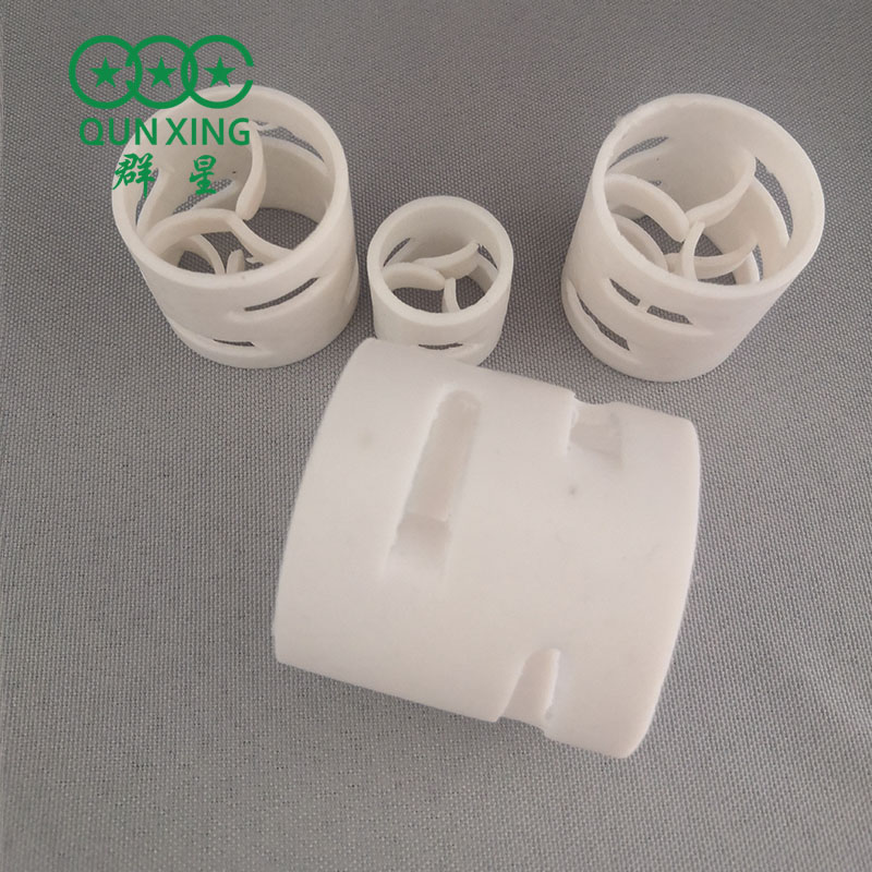 鮑爾環(huán)填料是一種新型填料,是針對拉西環(huán)的一些主要缺點加以改進而出現(xiàn)的,是在普通拉西環(huán)的壁上開六層長方形小窗,小窗葉片在環(huán)中心相搭,上下面層窗位置相互交搭而成。它與拉西環(huán)填料的主要區(qū)別是在于在側(cè)壁上開有長方形窗孔,窗孔的窗葉彎入環(huán)心,由于環(huán)壁開孔使得氣、液體的分布性能較拉西環(huán)得到較大的改善,尤其是環(huán)的內(nèi)表面積能夠得以充分利用。