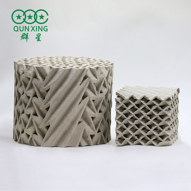 陶瓷波紋填料是一種新型規(guī)整填料,它是由許多具有相同幾何形狀的填料單元體組成。由于陶瓷的結(jié)構(gòu),具有良好的親水性能,其表面可形成極薄的液膜的湍動(dòng)及氣流的傾斜曲折通道能促進(jìn)氣流但又不阻擋氣流使陶瓷填料能與金屬填料相匹敵,而其耐腐蝕、耐高溫性能金屬填料卻無法相比。表面結(jié)構(gòu)有良好的濕潤性能,能使液體加快流動(dòng)、使填料滯液量降至低。從而降低了過熱、聚合和結(jié)焦的機(jī)會(huì)。